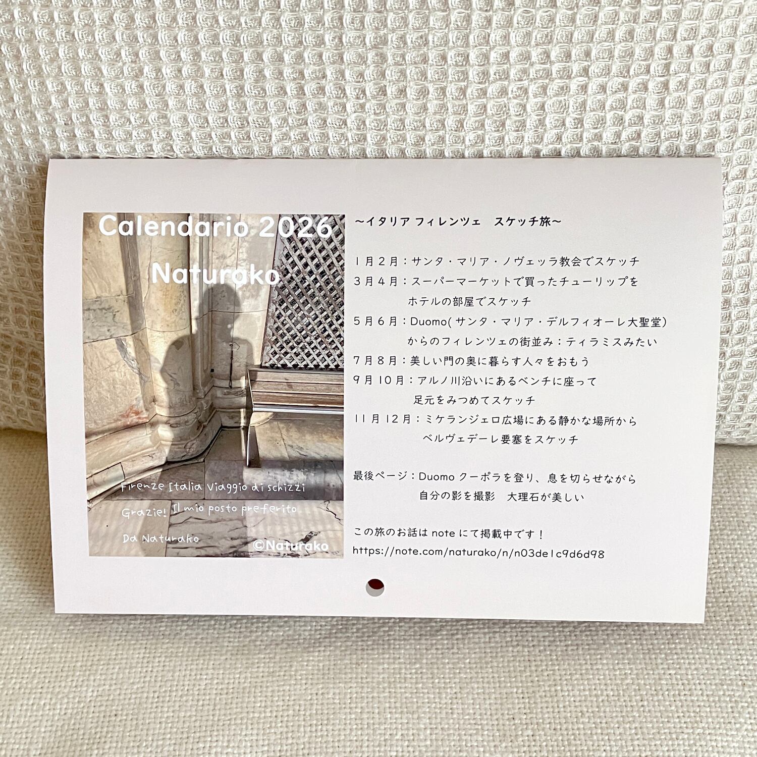 イタリア フィレンツェ旅のスケッチや水彩イラストを楽しめる壁掛けカレンダーです♪