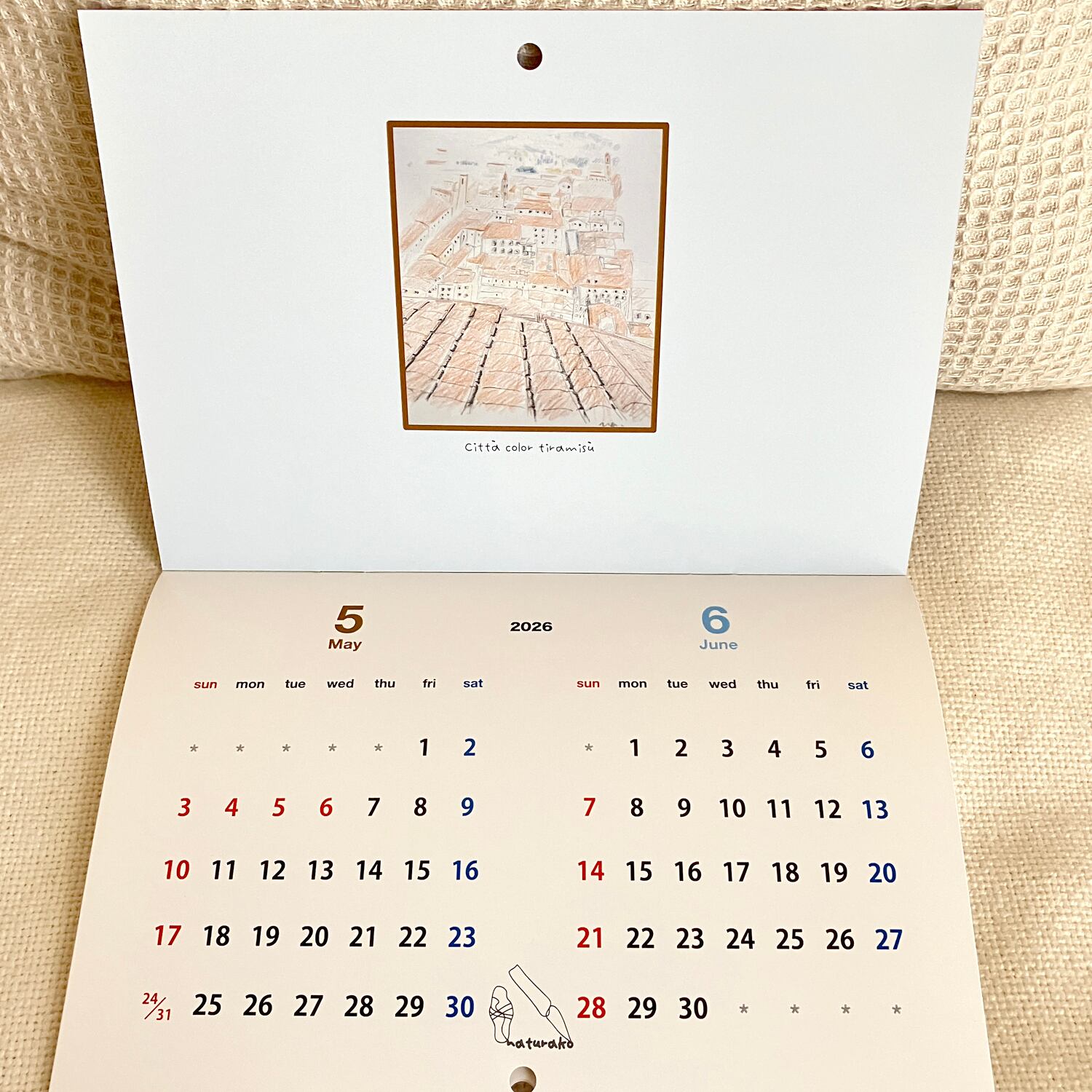 新作!2026年 壁掛けカレンダー A5サイズ(見開きA4) 2026年1月~2026年12月 2ヶ月毎 イタリア 水彩 ナチュラコ