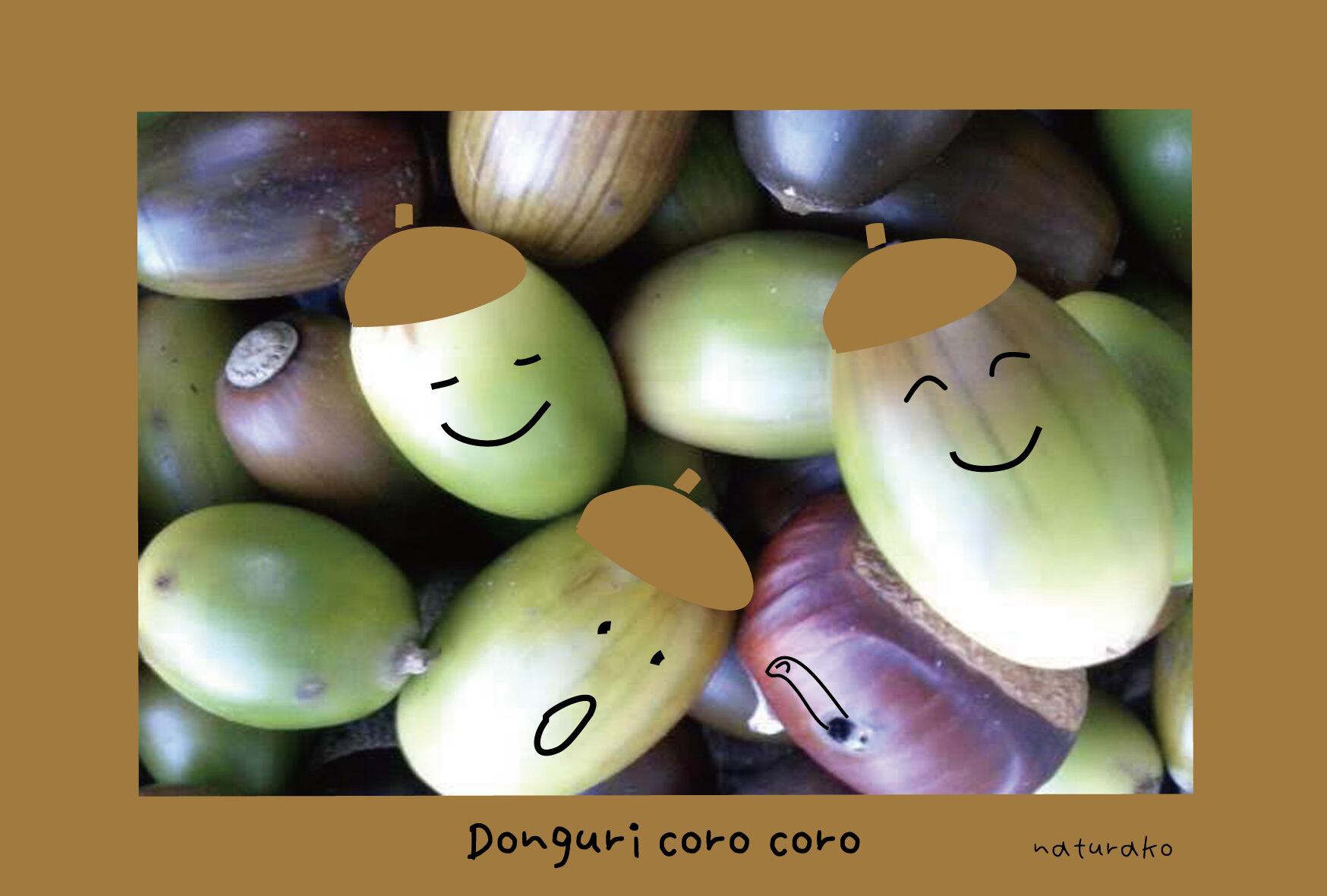 ドングリがぎゅっとなっている写真にキュートなイラストを描きました(^.^)