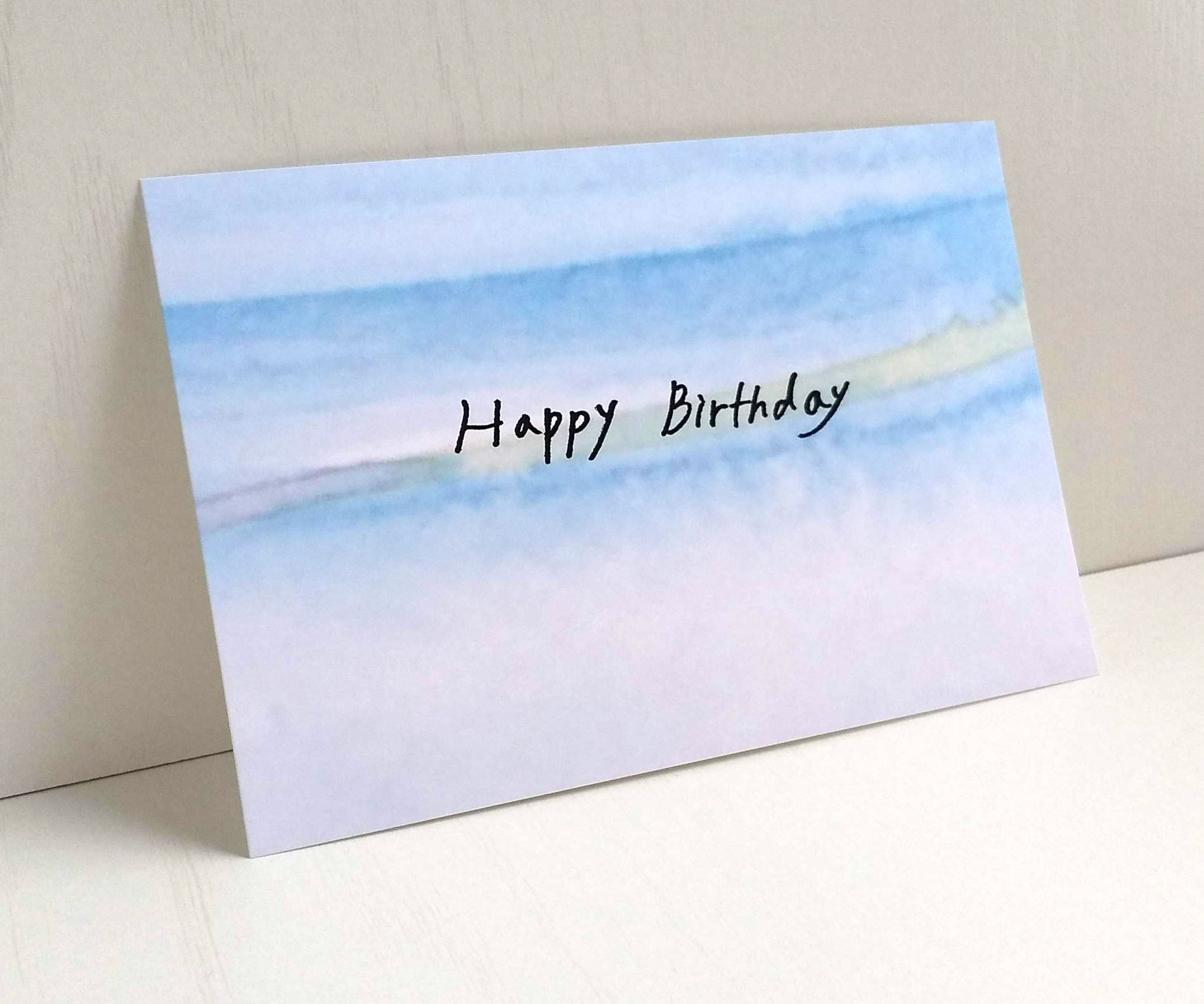 水彩画ブルー「ハッピーバースデー」 ポストカード 文字入り/3枚セット ナチュラコ