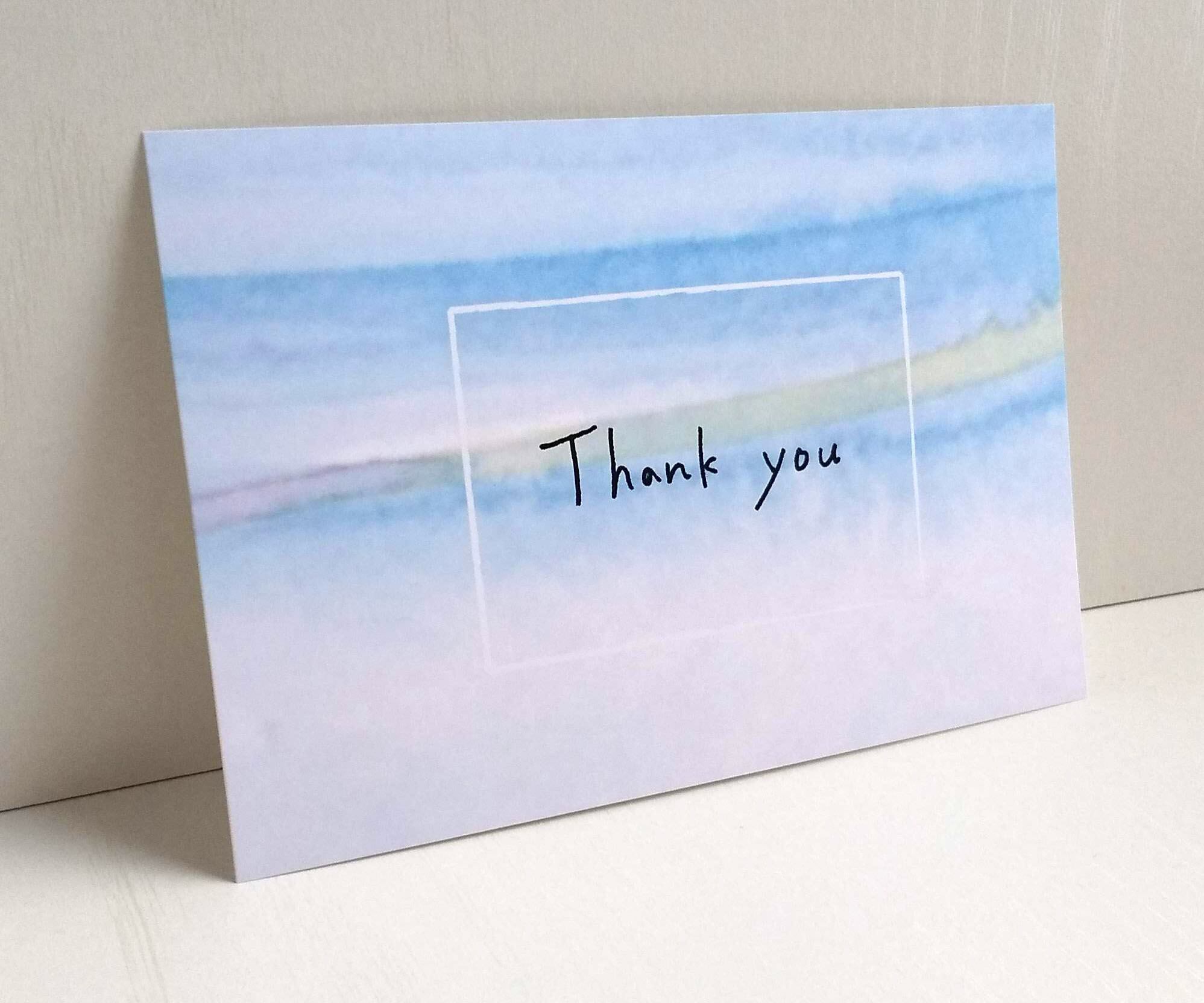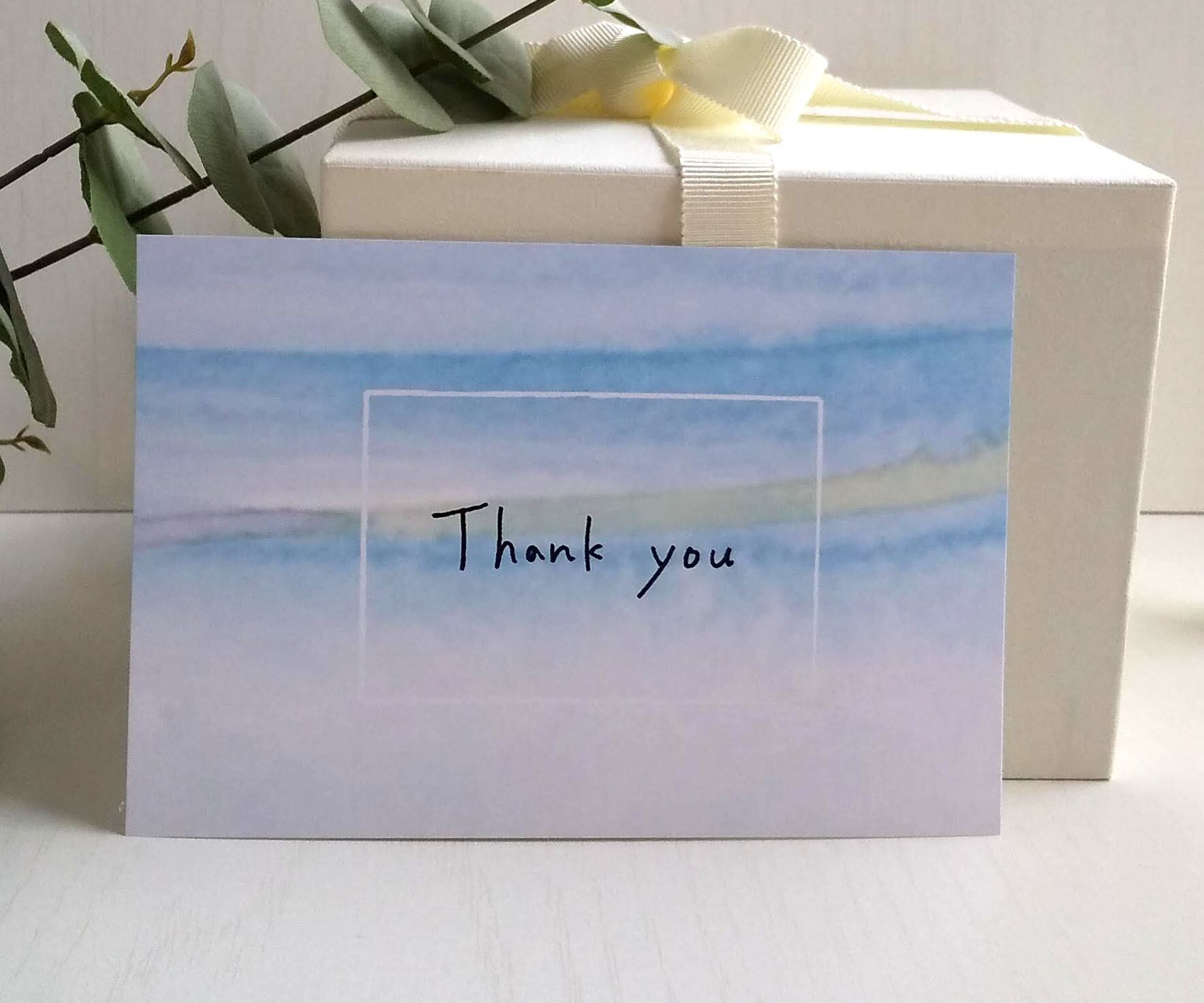 水彩画ブルー「サンキュー」 ポストカード 文字入り/3枚セット ナチュラコ