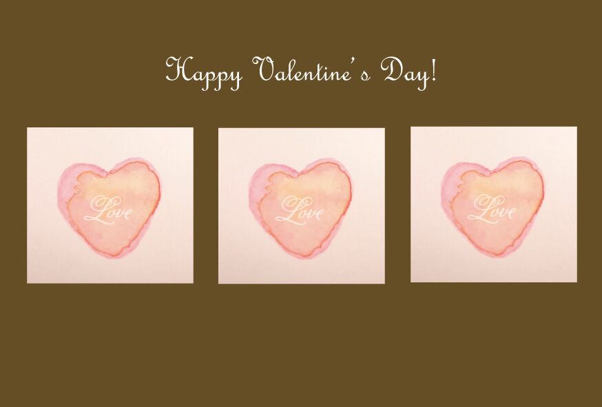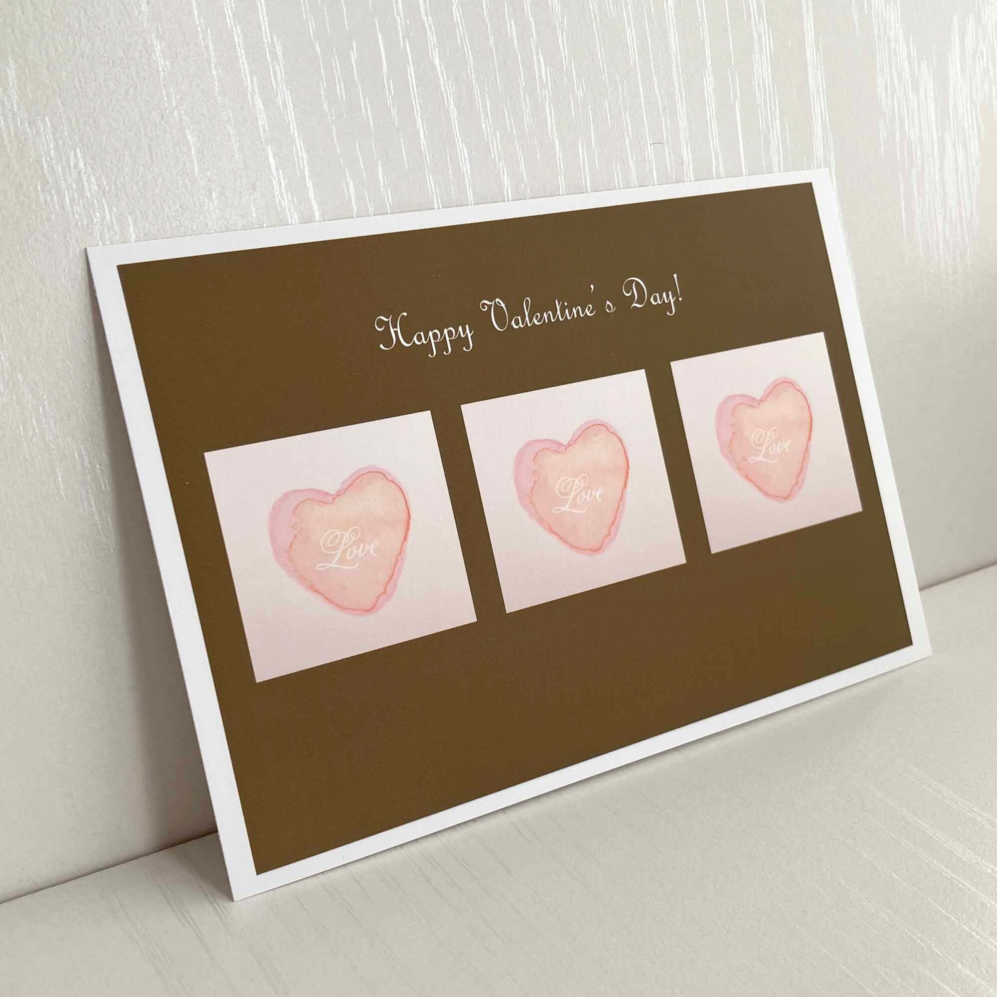 水彩画で描いたハートをチョコレート色とデザインしたバレンタインカードです。