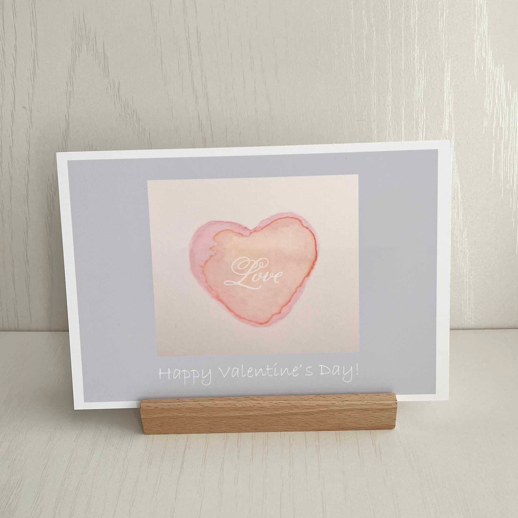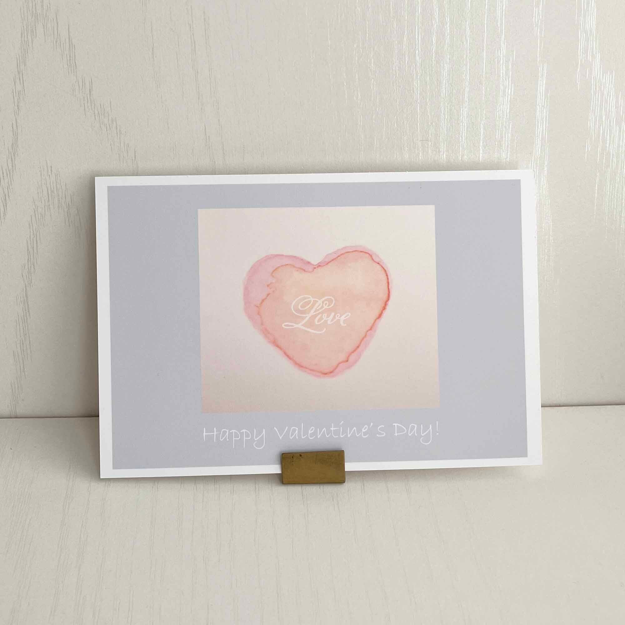 水彩画で描いた大きなハートをおしゃれなグレーとデザインしたバレンタインカードです。