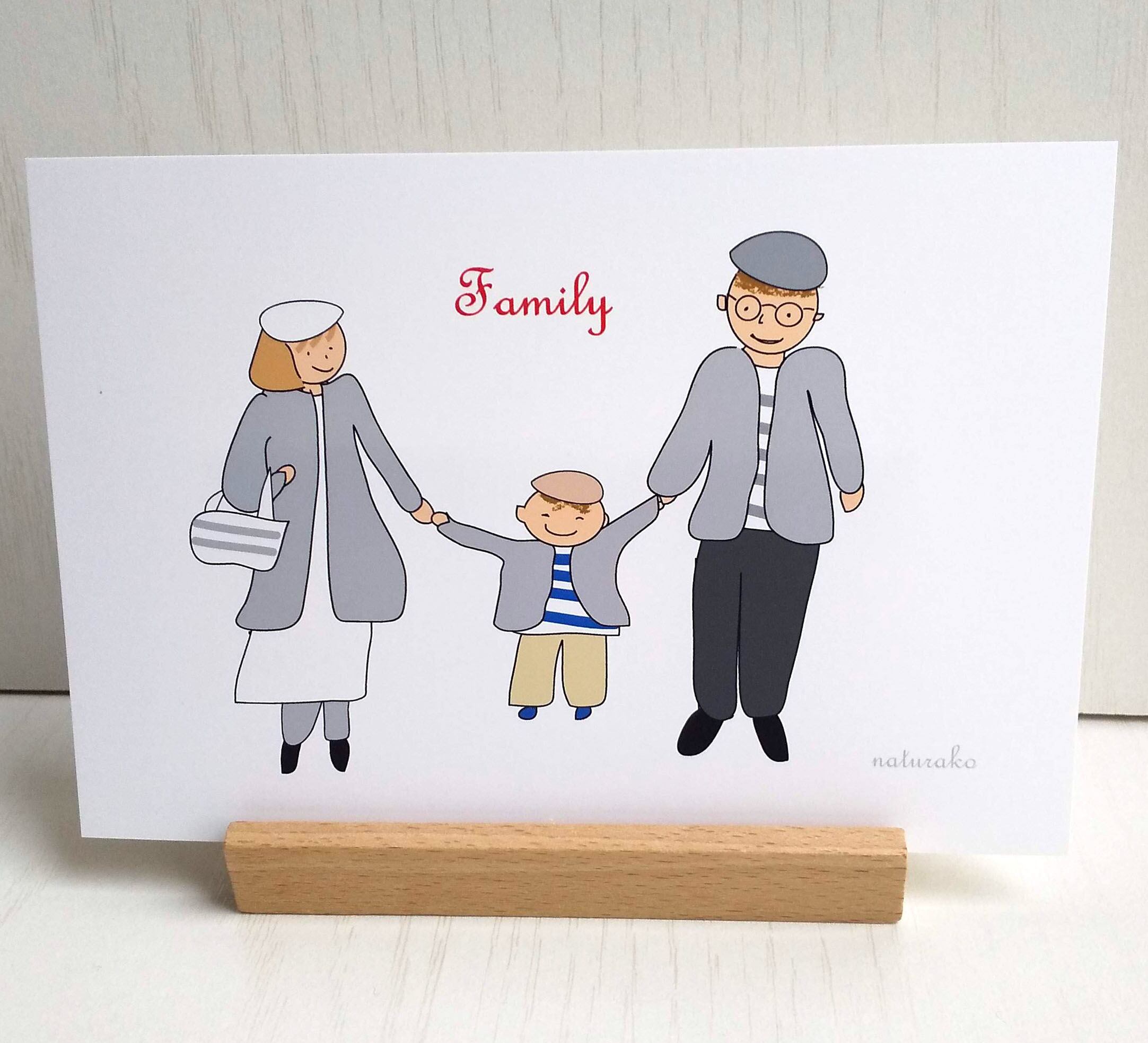 ほのぼの ファミリー イラスト ポストカード イラスト /3枚セット ナチュラコ