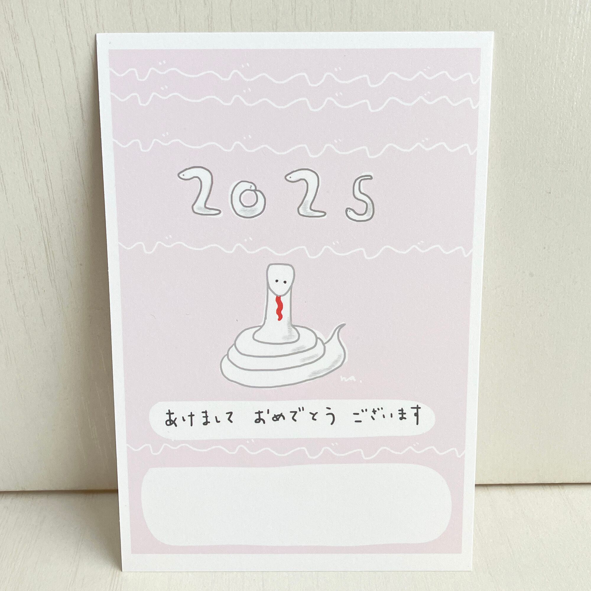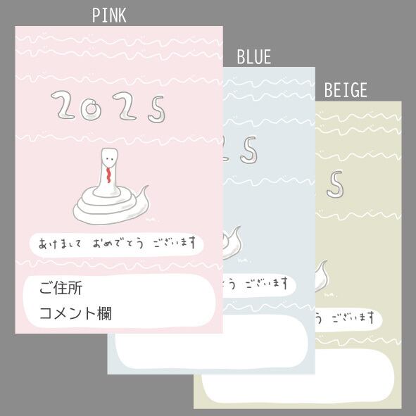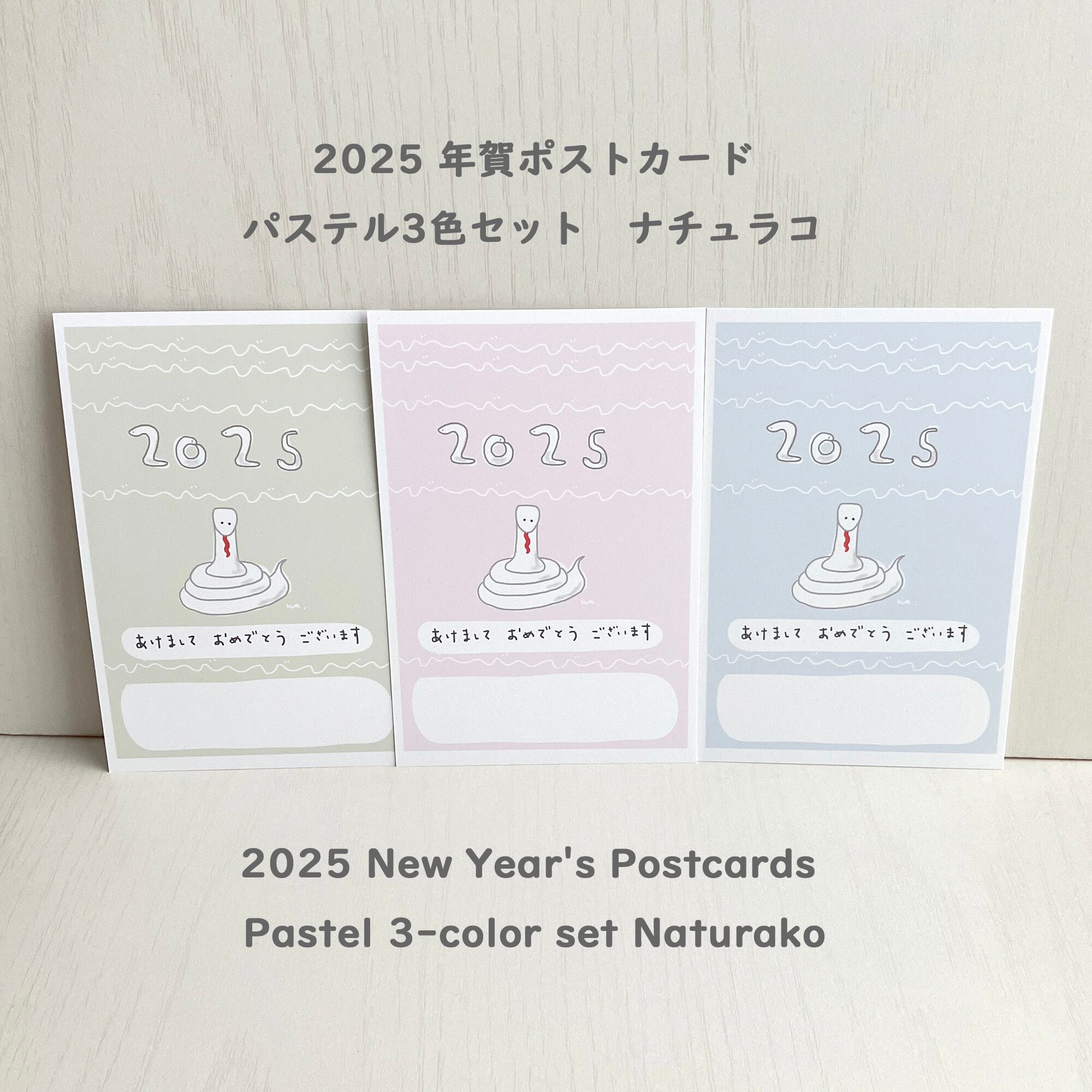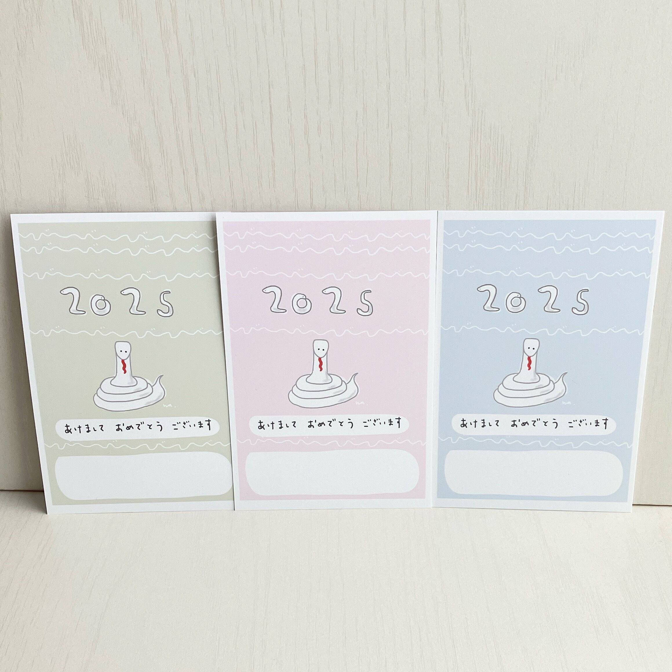 新年「ゆるかわな巳」 干支 巳年 2025年パステルカラー3色 年賀ポストカード 3枚セット naturako